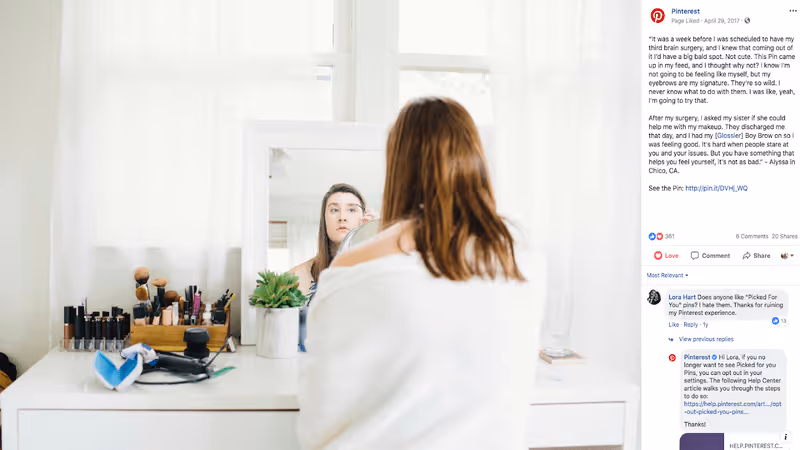 Jessica interviewed me, along with one of the company's head engineers, who works specifically on their Promoted Pins feature. I got to share with the company how I came across a Promoted Pin from the company Glossier (who was virtually unknown back then), at a time when I really needed it. One of their products “Boy Brow,” helped me feel more like myself while going through weekly chemo treatments. The whole thing was over in a matter of forty five minutes. Afterwards, I chatted with the CEOs who were incredibly warm and got a tour of one of their two offices in San Francisco. The space is bright, airy, and stocked with all the snacks you would ever want - dreamy.